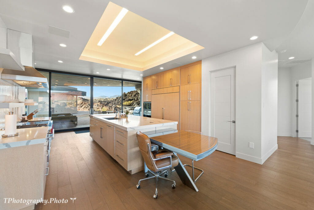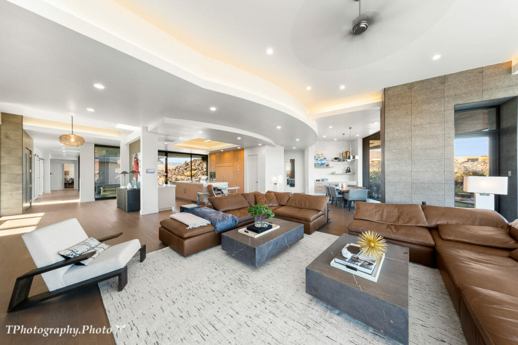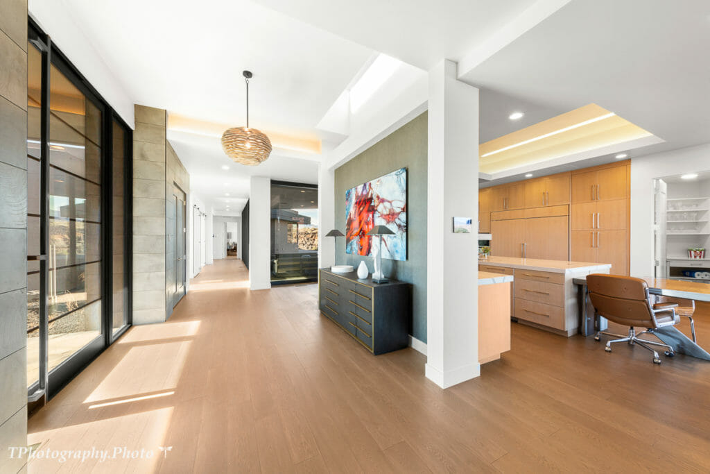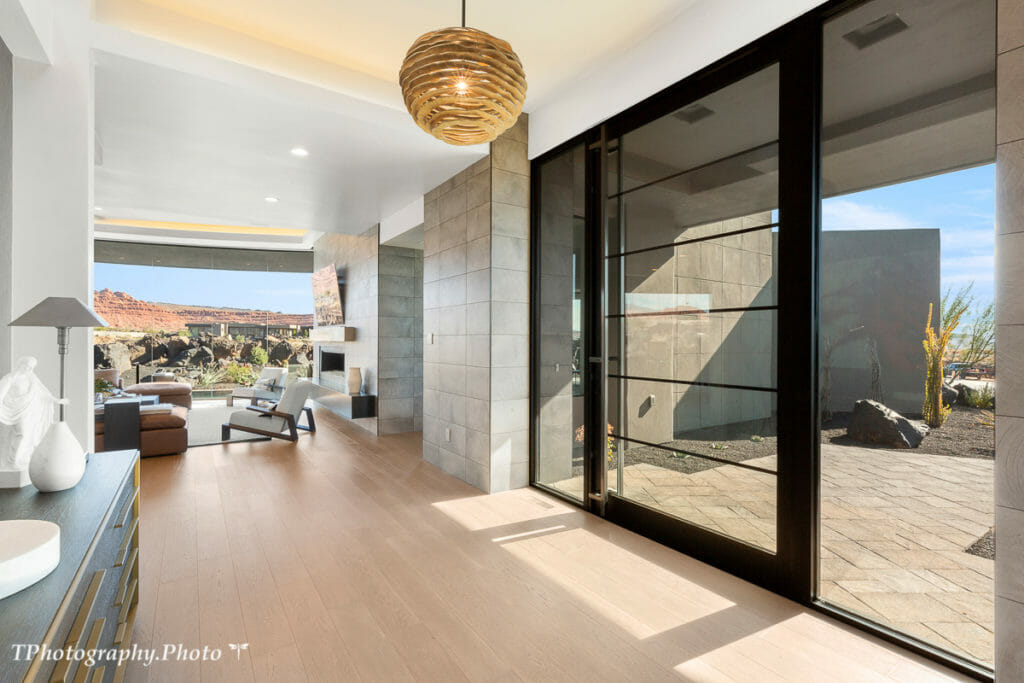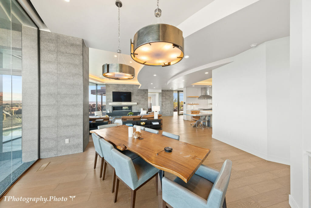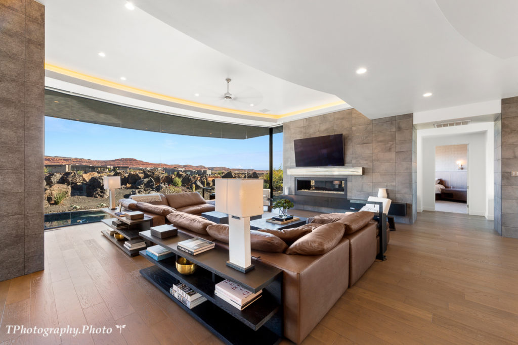 This stunning modern home sits on a large 1.13-acre lot in the highly desirable gated Chaco West Subdivision at Entrada at Snow Canyon, offering expansive views of Snow Canyon and Pine Valley Mountain. Over 5,100 sq/ft all on one level, custom designed by McQuay Architects and built by Shakespeare Development truly combines all the best elements of luxury living. You will find a state-of-the-art chef’s kitchen, featuring SubZero and Wolf appliances, adjacent to retractable sliding doors, creating an indoor-outdoor combined courtyard oasis equipped with a heated outdoor pool and spa. Relax and rejuvenate in this calming atmosphere of natural elements, colors, and expansive natural light from the extensive floor-to-ceiling windows. Large doors opening to a fabulous outdoor area are ideal for entertaining. Retire to four private suites with ensuite bathrooms, including two owner suites. No upgrade was overlooked in this masterpiece.